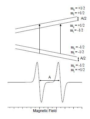 因此A值即为不同分裂峰之间的距离。这样计算出来的A值单位为mT。实际文献中许多A值单位为cm-1.换算公式见下图: